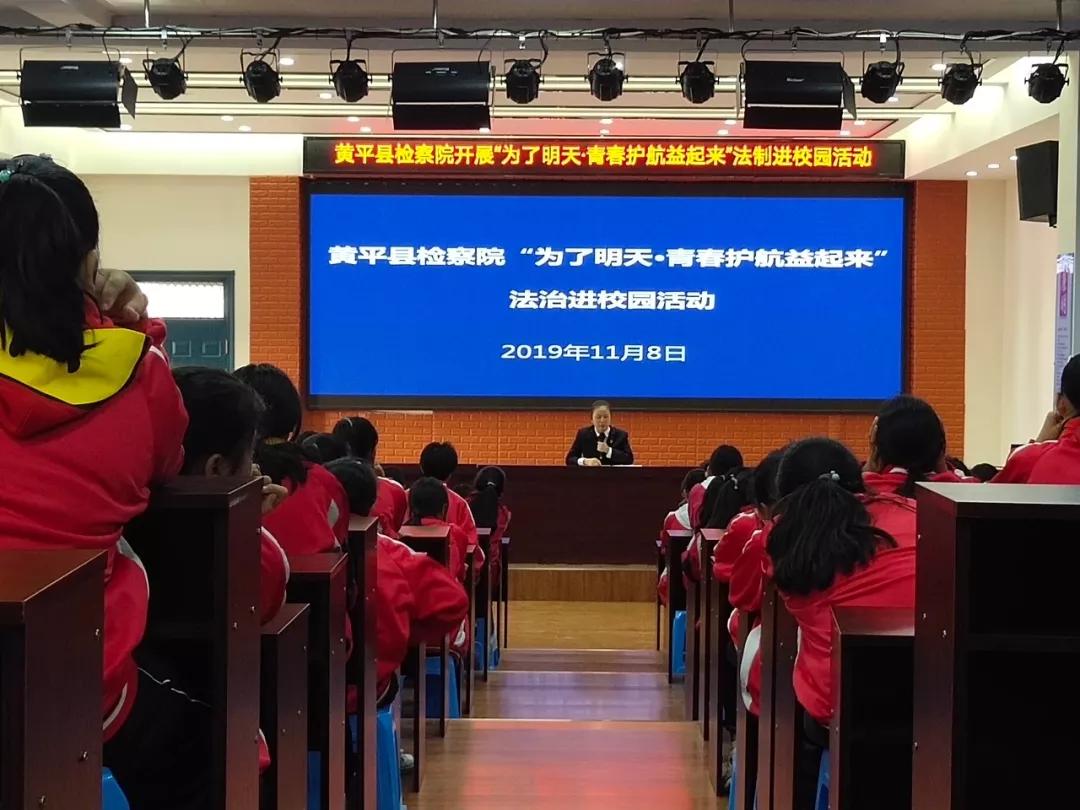黄平县人民检察院“为了明天˙青春护航益起来”法治进校园活动已全面铺开。近日,作为黄平县新州镇湖里中学法治副校长的我院副检察长朱启秀,为该校250余名13-14周岁女学生上了一堂生动的法治教育课。