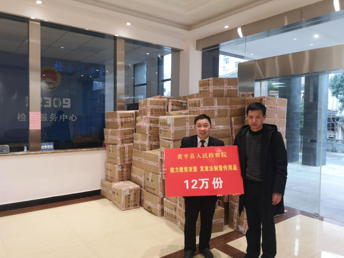 为助力脱贫攻坚,增强群众对检察职能的了解,11月29日,我院向黄平县扶贫办赠送了12万份法制宣传杯。